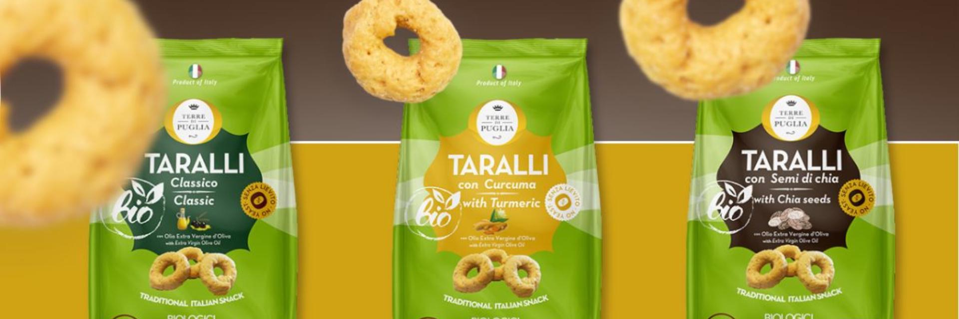 Entdecken Sie die Vielfalt unserer neuen Bio-Taralli von Terre Di Puglia und lassen Sie sich von ihren einzigartigen Geschmacksrichtungen verführen.