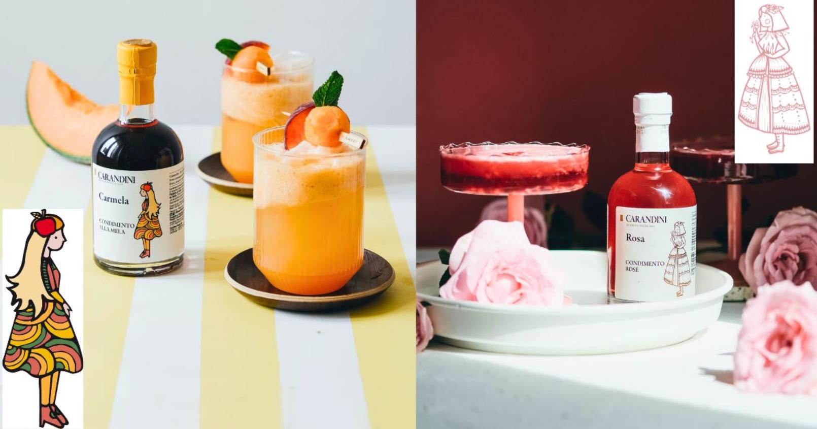 Proposition de recette : Cocktail de melon et de citronnelle avec vinaigrette à la pomme Carmela et Cocktail de roses et framboises au vinaigre de vin Rosa Rosé