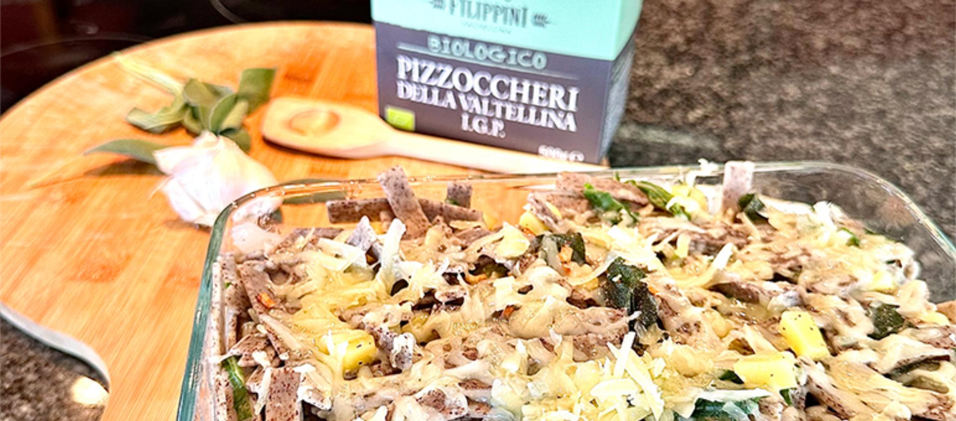 Les pizzoccheri sont une variété de pâtes à base de farine de sarrasin et de blé. Cette spécialité est originaire de la Valteline lombarde et du Puschlov grison. Elle est typiquement servie avec des côtes de bette, des pommes de terre et du fromage.
