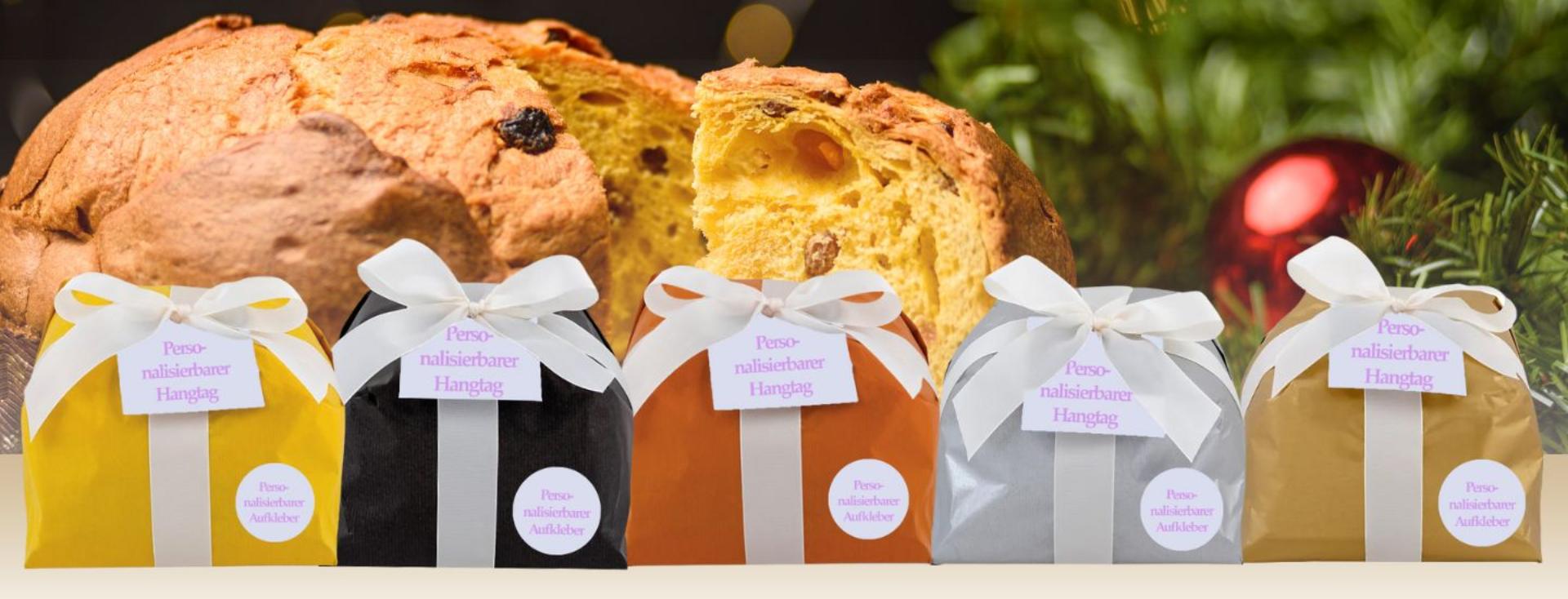 Donnez à votre marque une note particulièrement gourmande en période de fête : avec des panettoni issus de l'artisanat traditionnel italien. Sur demande, nous créons pour vous des hangtags et des autocollants personnalisés et vous proposons des solutions sur mesure pour votre entreprise. À partir d'une quantité minimale de 180 pièces, nous réalisons des tirages individuels de qualité supérieure - classiques, fruités à l'abricot ou fourrés de crème fine comme le sabayon, le limoncello ou le cioccolato.